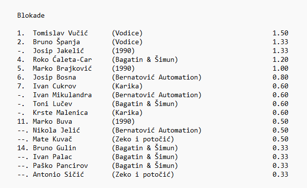Bernatović Automation: Dobra (4), Bosna (14), M. Jelić (18), Vukadinović (7), Junaković (14), Bauk, I. Mikulandra (18), A. Božikov ( 8 )