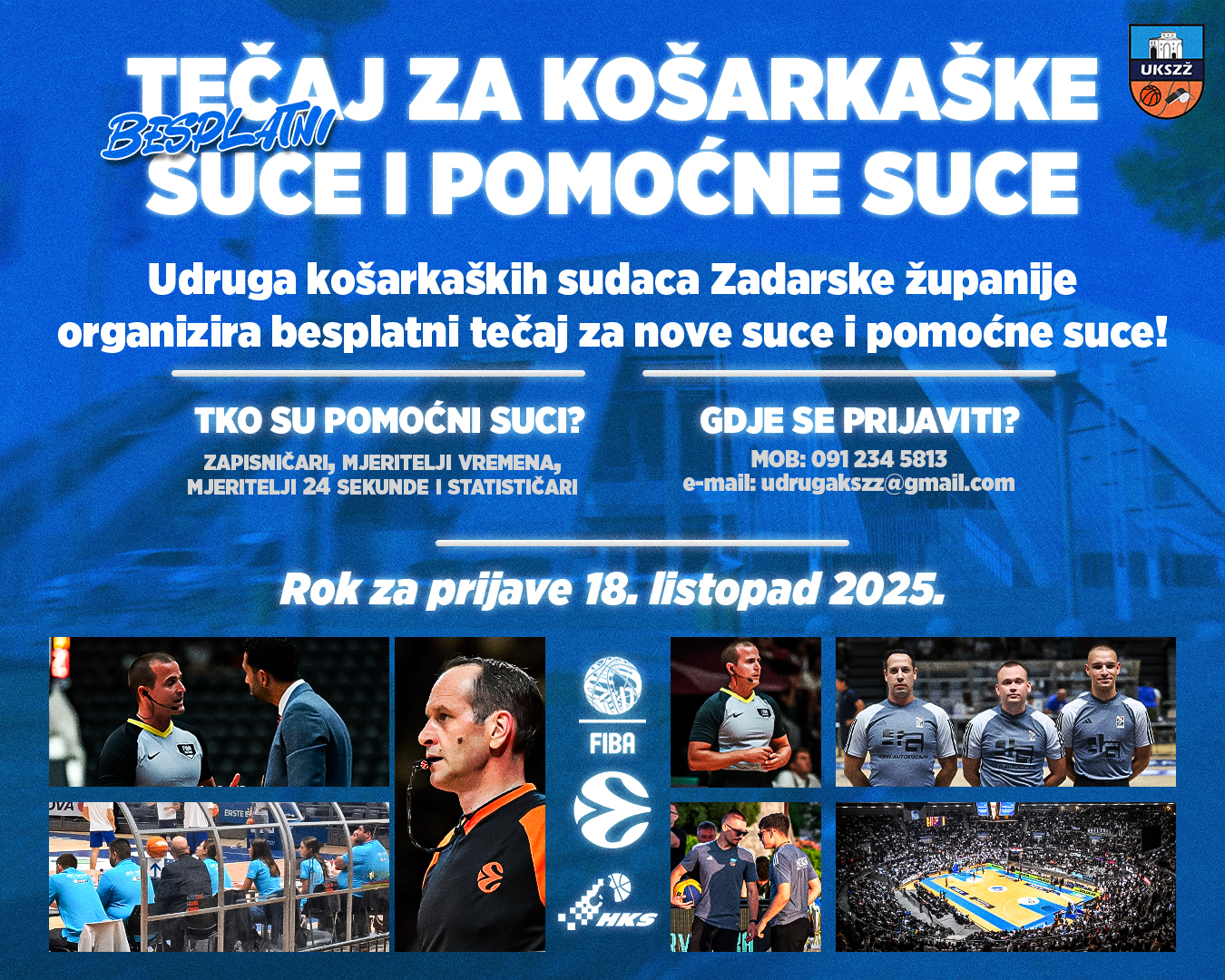 Udruga košarkaških sudaca Zadarske županije organizira besplatni tečaj za košarkaške suce, pomoćne suce i statističare.